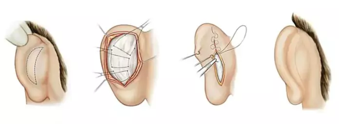 Durante a cirurgia, o cirurgião plástico ajusta a cartilagem da orelha para criar um aspecto mais natural e simétrico.